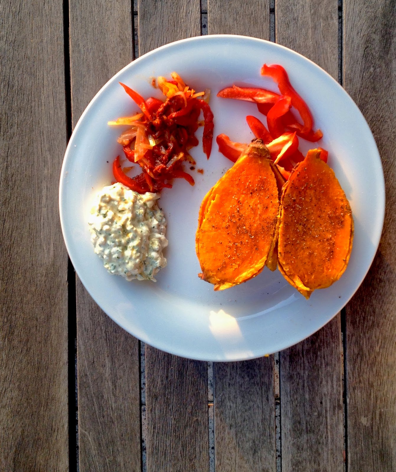 zusammen mit hüttenkäse-quark-kräuter dip und bei mir mit gedünstetem paprikagemüse.